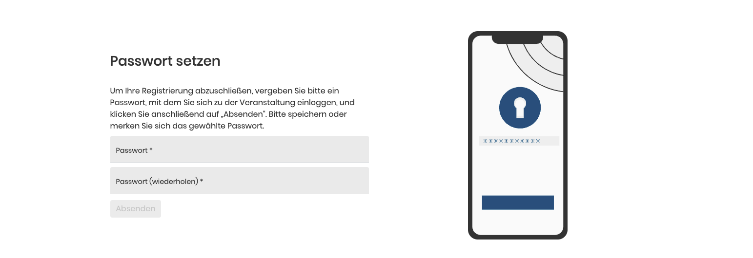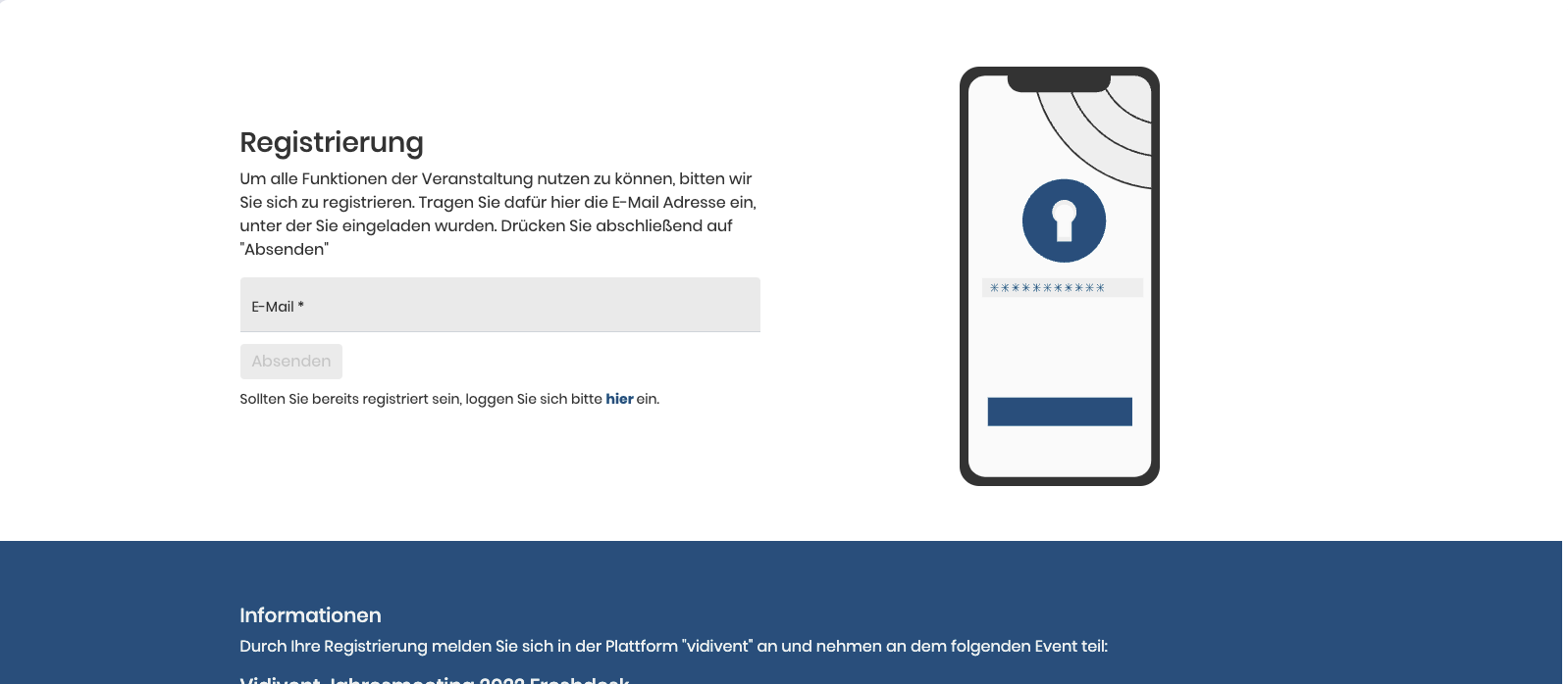 Sobald Sie auf "Absenden" klicken, sind Sie für das Event final registriert und können Sie nun sich mit Ihrer Mail und dem Passwort zum Event einloggen.