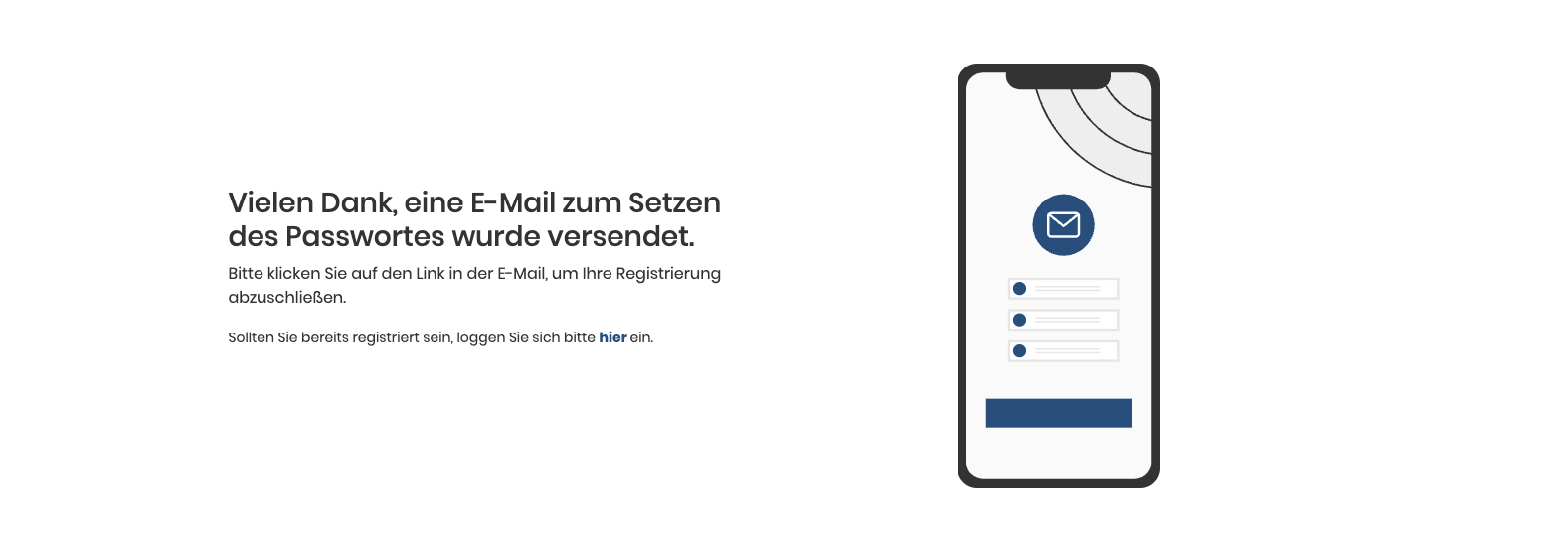 Sehen Sie nun in Ihrem Mailprogramm nach, ggf. auch im Spam. Klicken Sie anschließend auf den Link in der E-Mail und setzen sich folgend ein Passwort, um Ihre Registrierung abzuschließen.